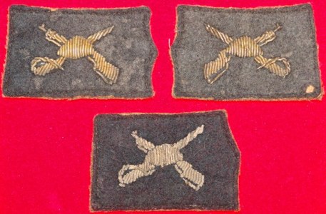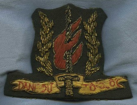 "Solid brass cap insignia. Locally produced. No silver insignia found to date so it is assumed that all ranks wore the gold (brass) model."