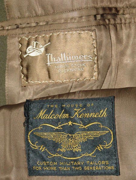 2960D - 35th Infantry Division Corporal's "Combat Jacket" made of water repellant material, GI's name is written on the inside, neck label reads "M", very-high quality materials used (unusual for a private purchase jacket), Talon Zipper with correct "fold-over" khaki tape at the bottom, Gold/Olive Drab shade of embroidered Corporal Stripes, Used......(sold)