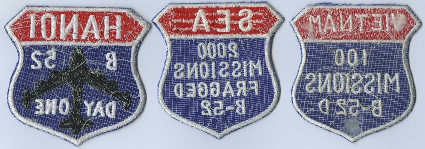 left - Hand-embroidered Vietnam made "SKYRAIDER" with an "A" and a "1"