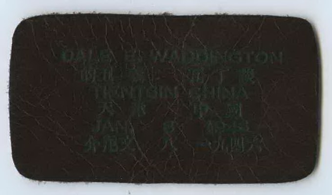 USMC Brown Leather Name Tag - made in Tientsin, China